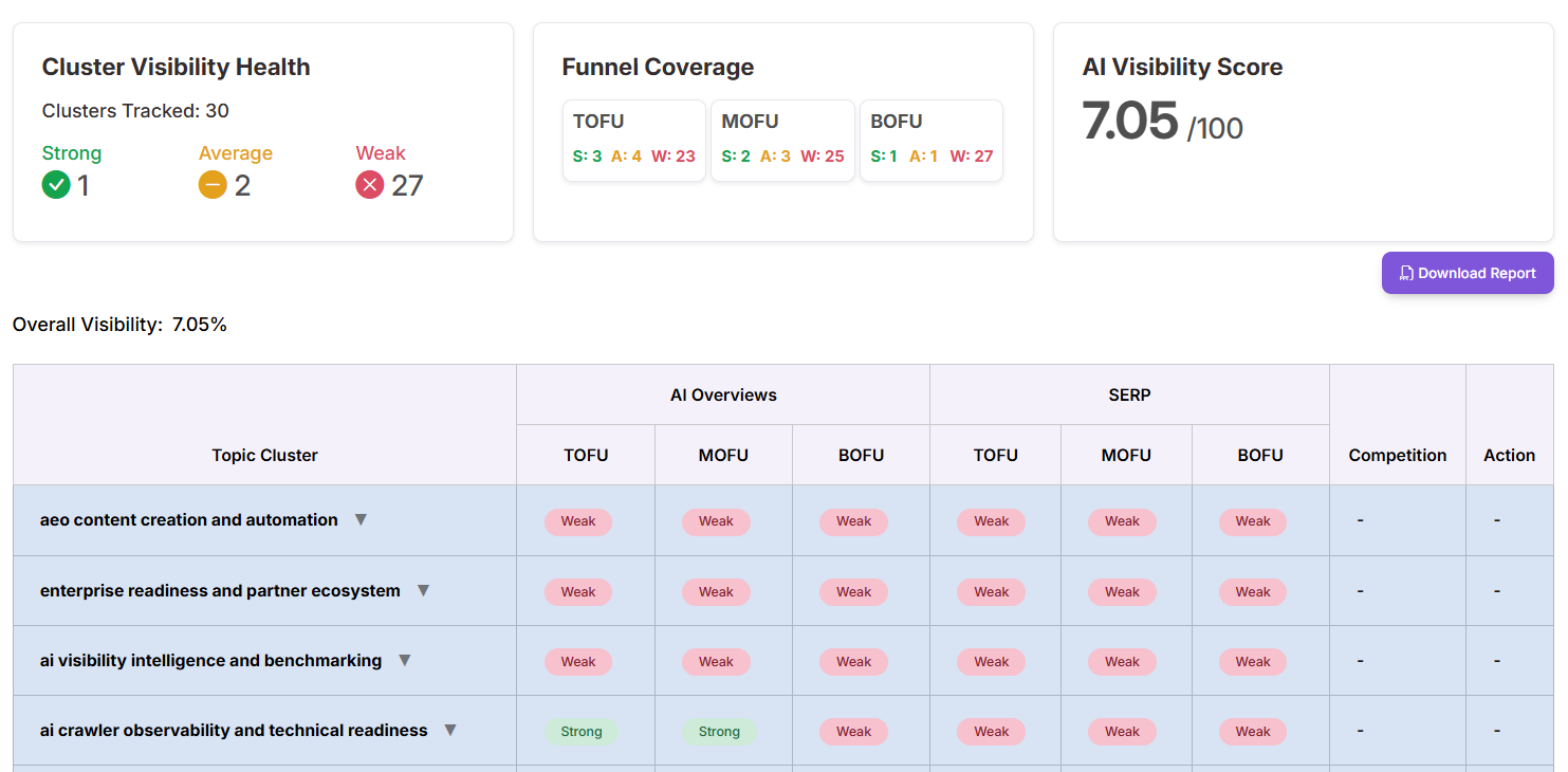 | Weak / Average / Strong visibility scoring | ||